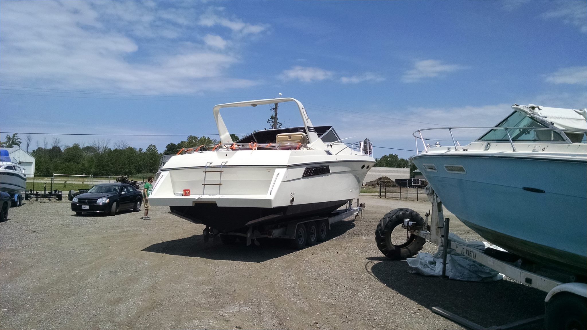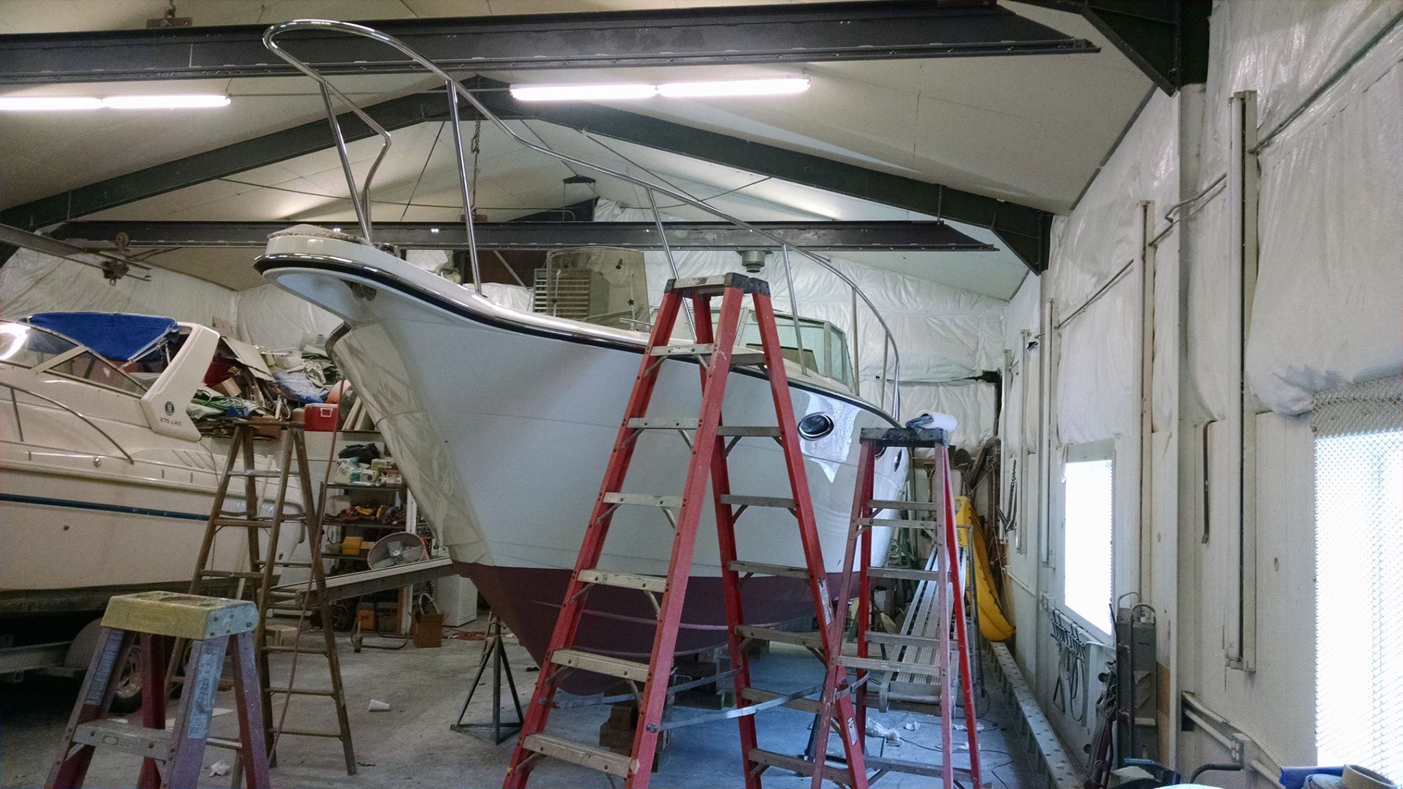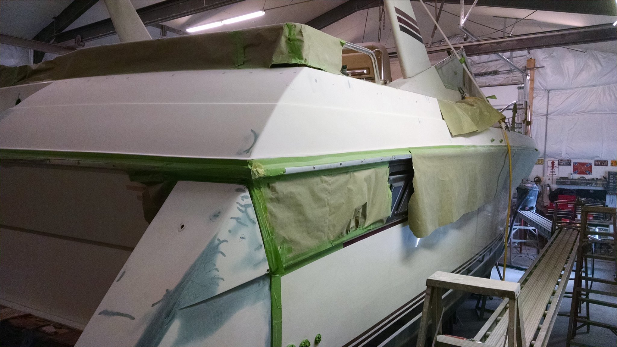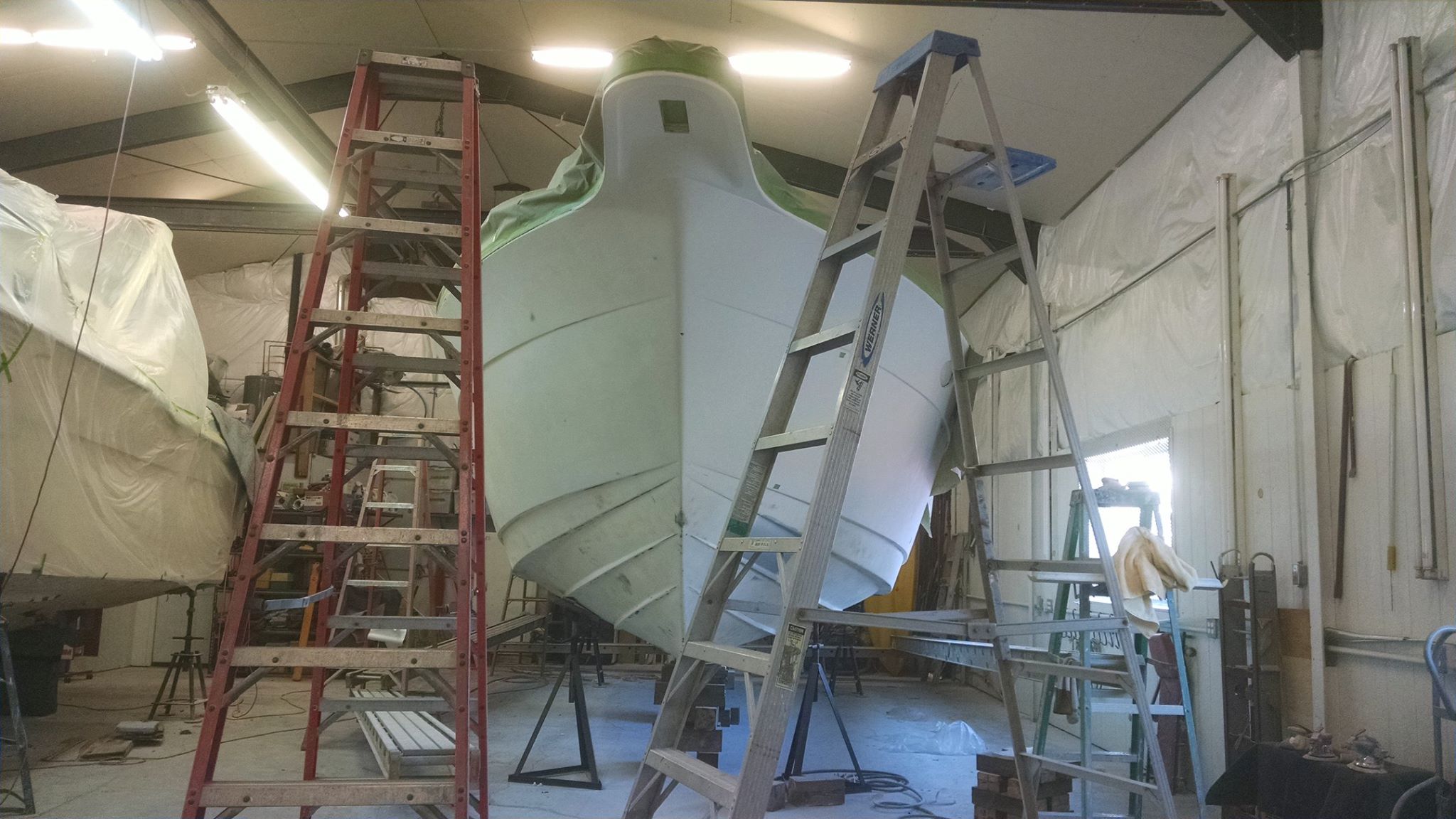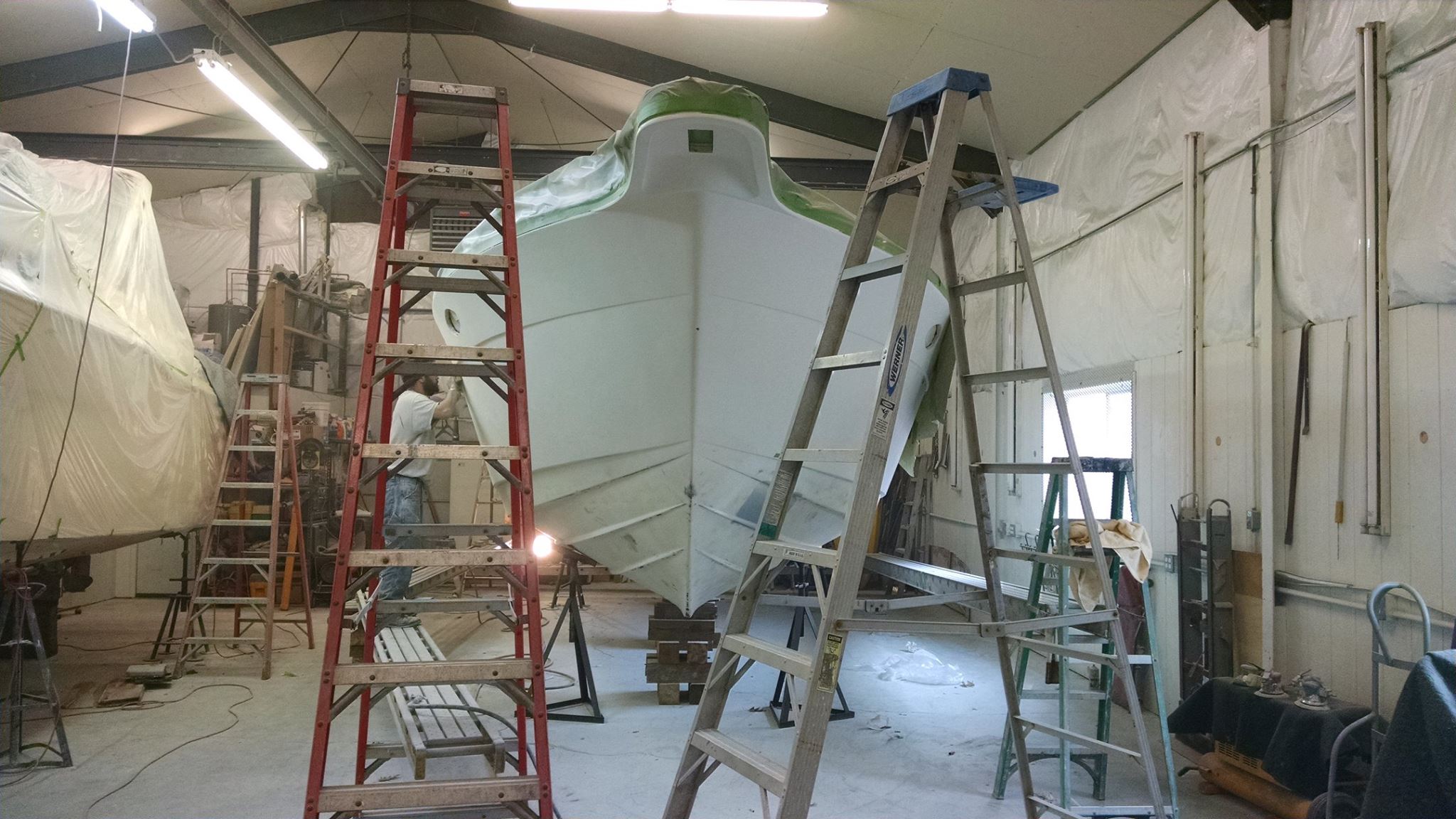 Heavy snow fall at Lake Chautauqua, New York, brought shed roof down on ski arch and windshield. Re-gel-coated top half, added new graphics. Replaced with new windshield and brackets.