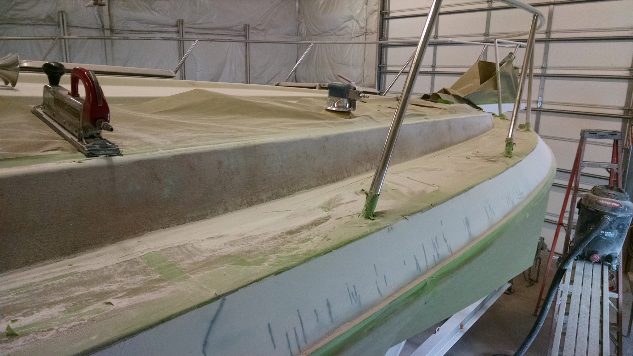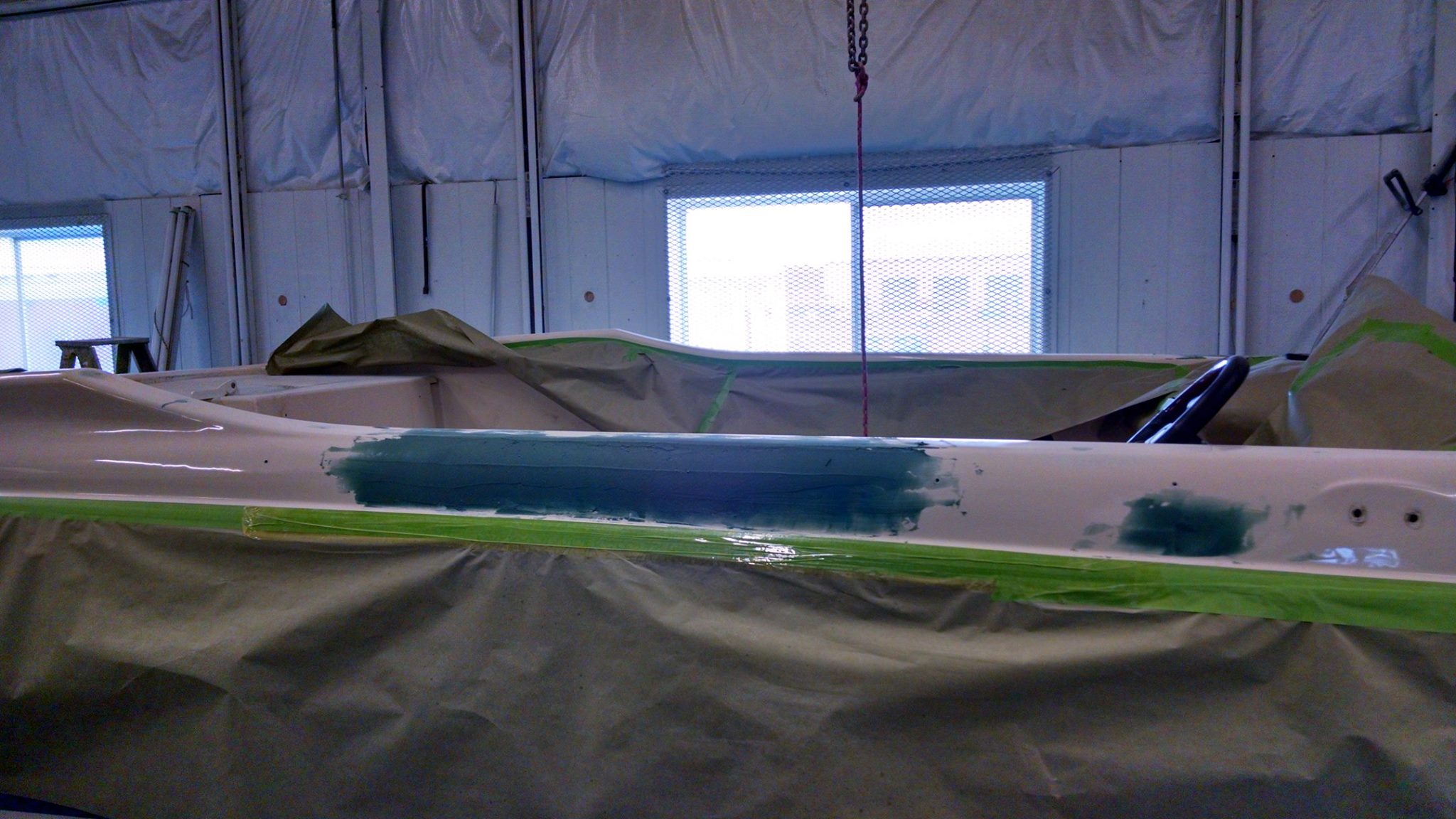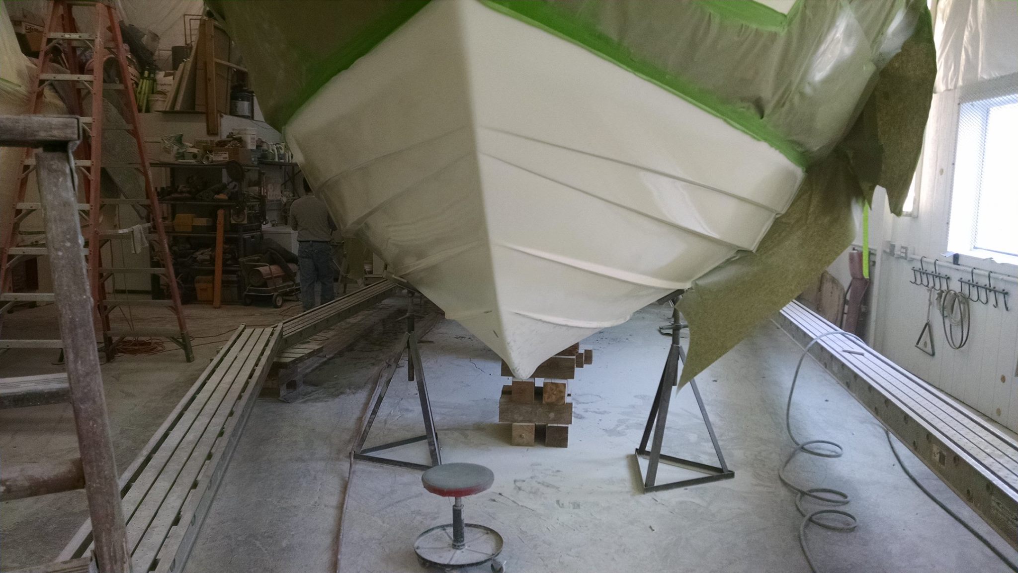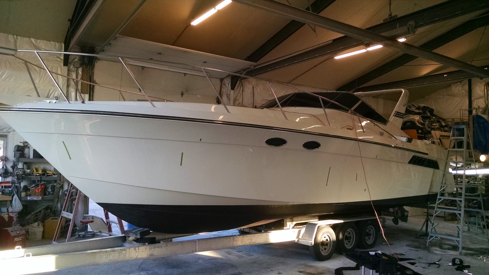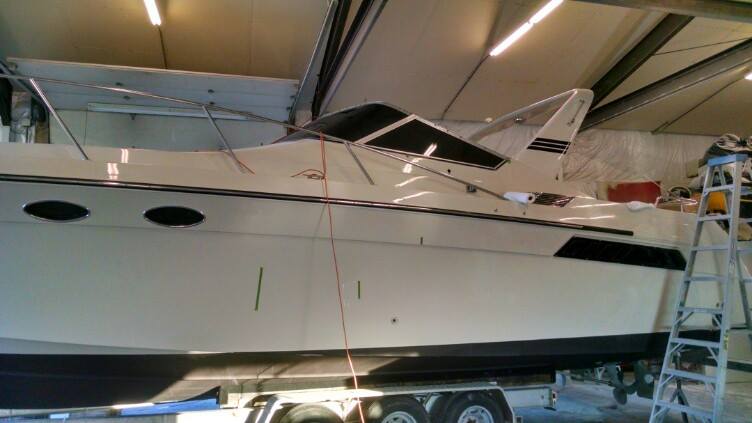 Heavy snow fall at Lake Chautauqua, New York, brought shed roof down on ski arch and windshield. Re-gel-coated top half, added new graphics. Replaced with new windshield and brackets.