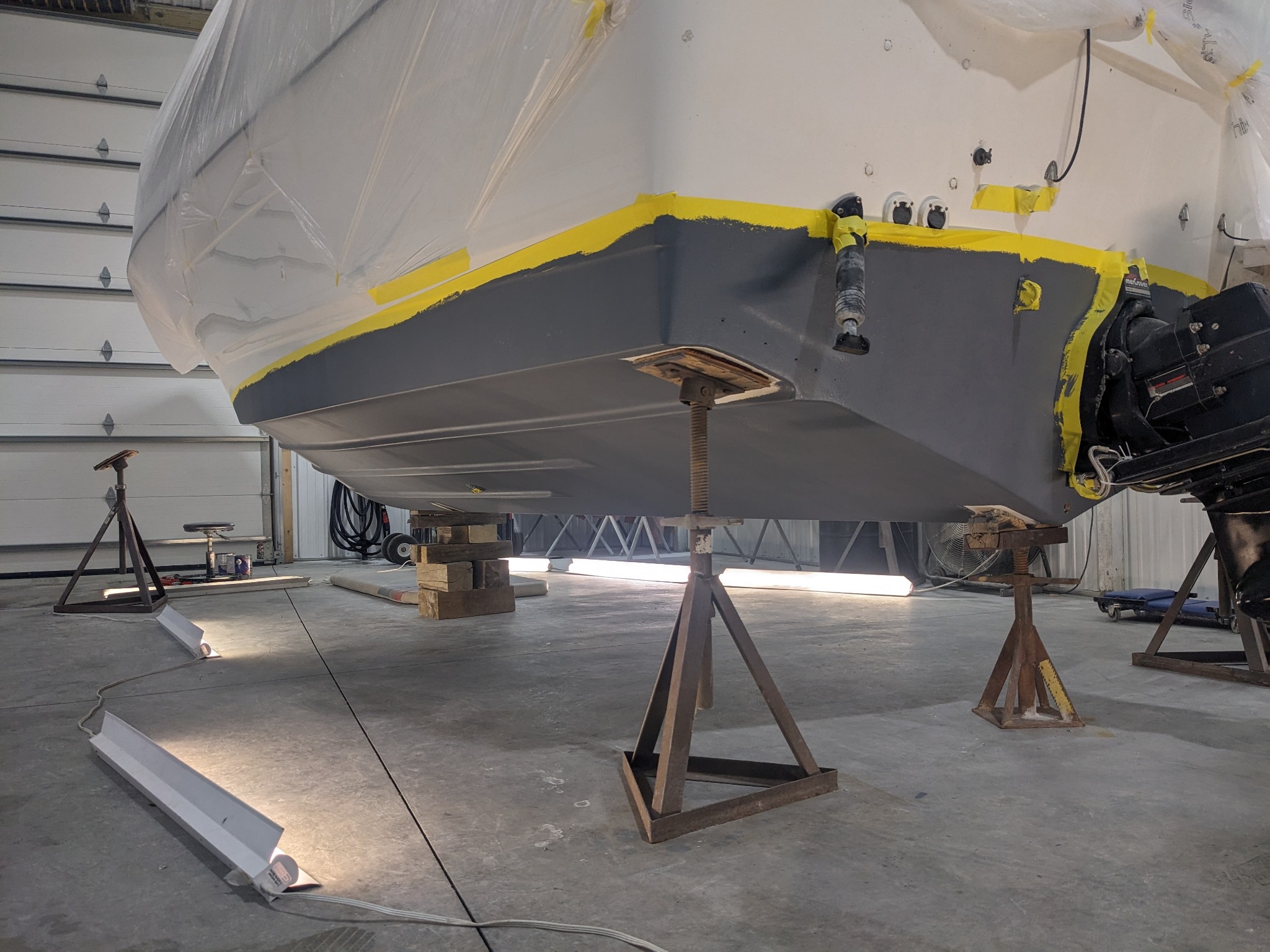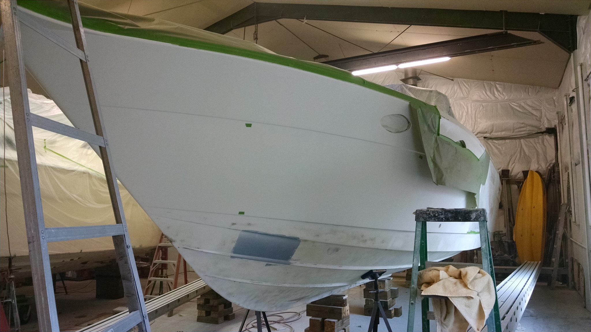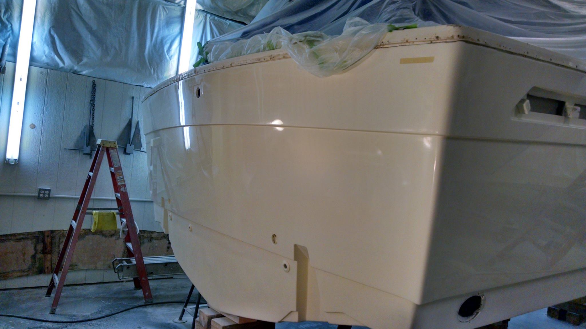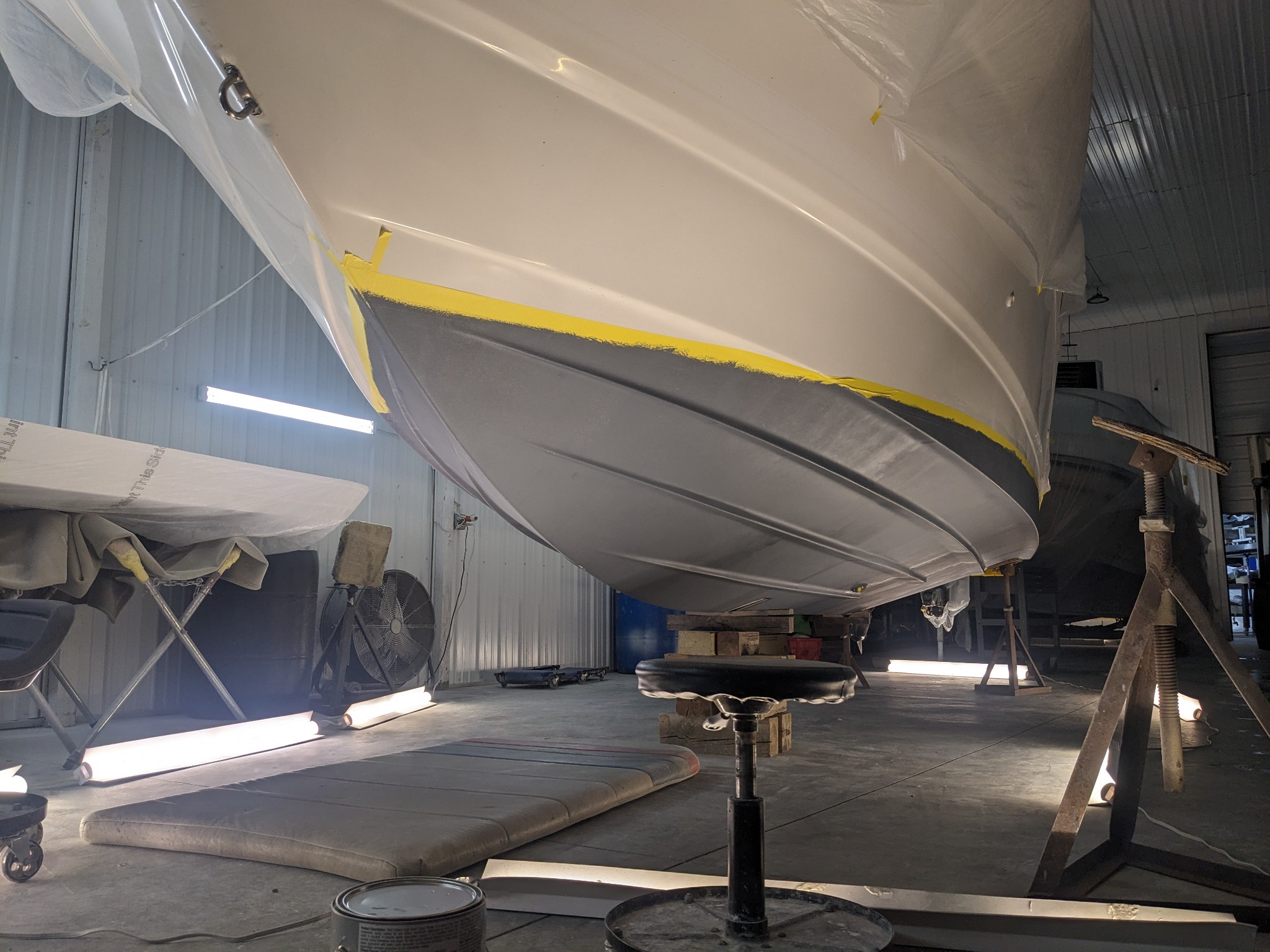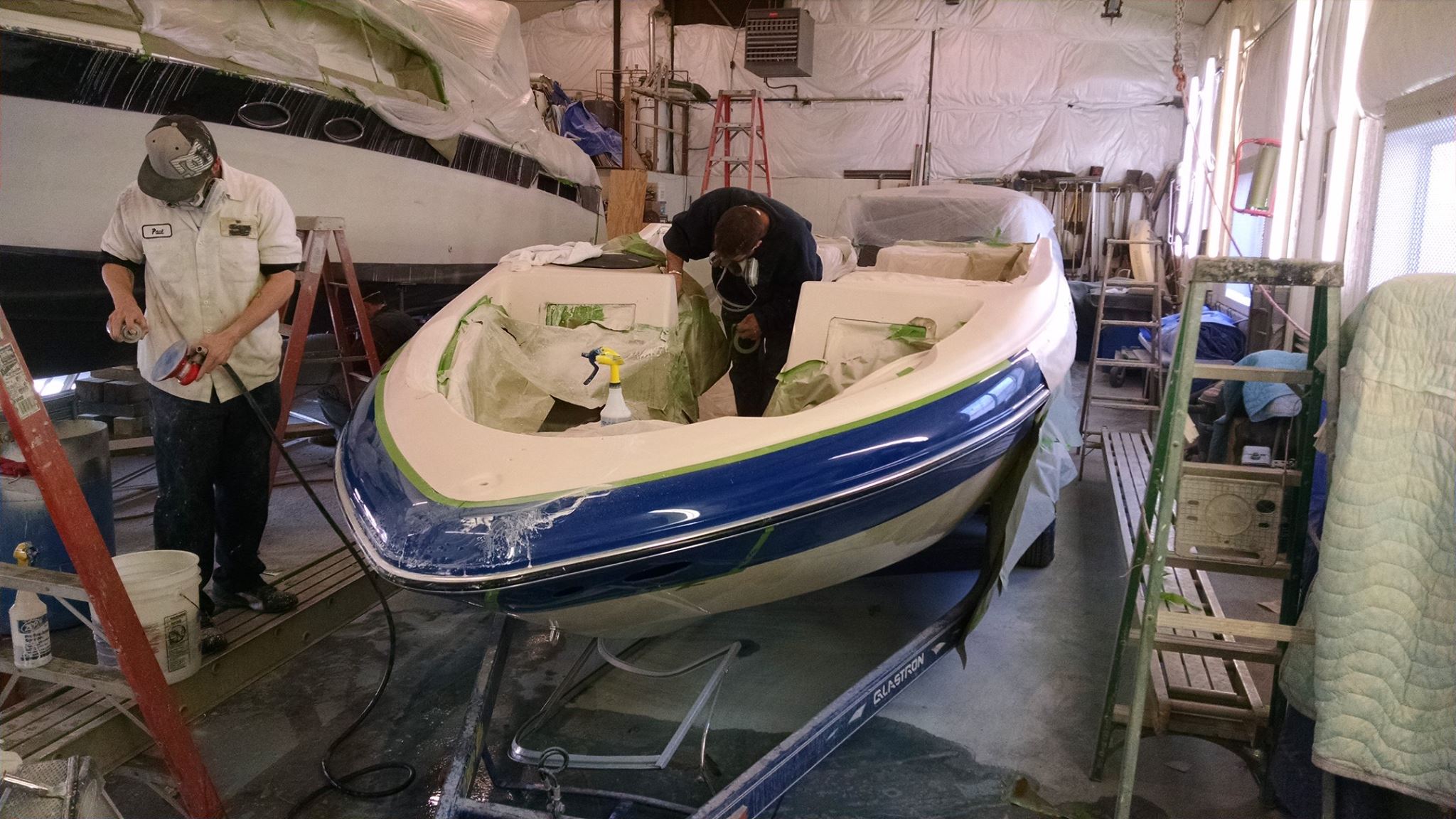 Heavy snow fall at Lake Chautauqua, New York, brought shed roof down on ski arch and windshield. Re-gel-coated top half, added new graphics. Replaced with new windshield and brackets.