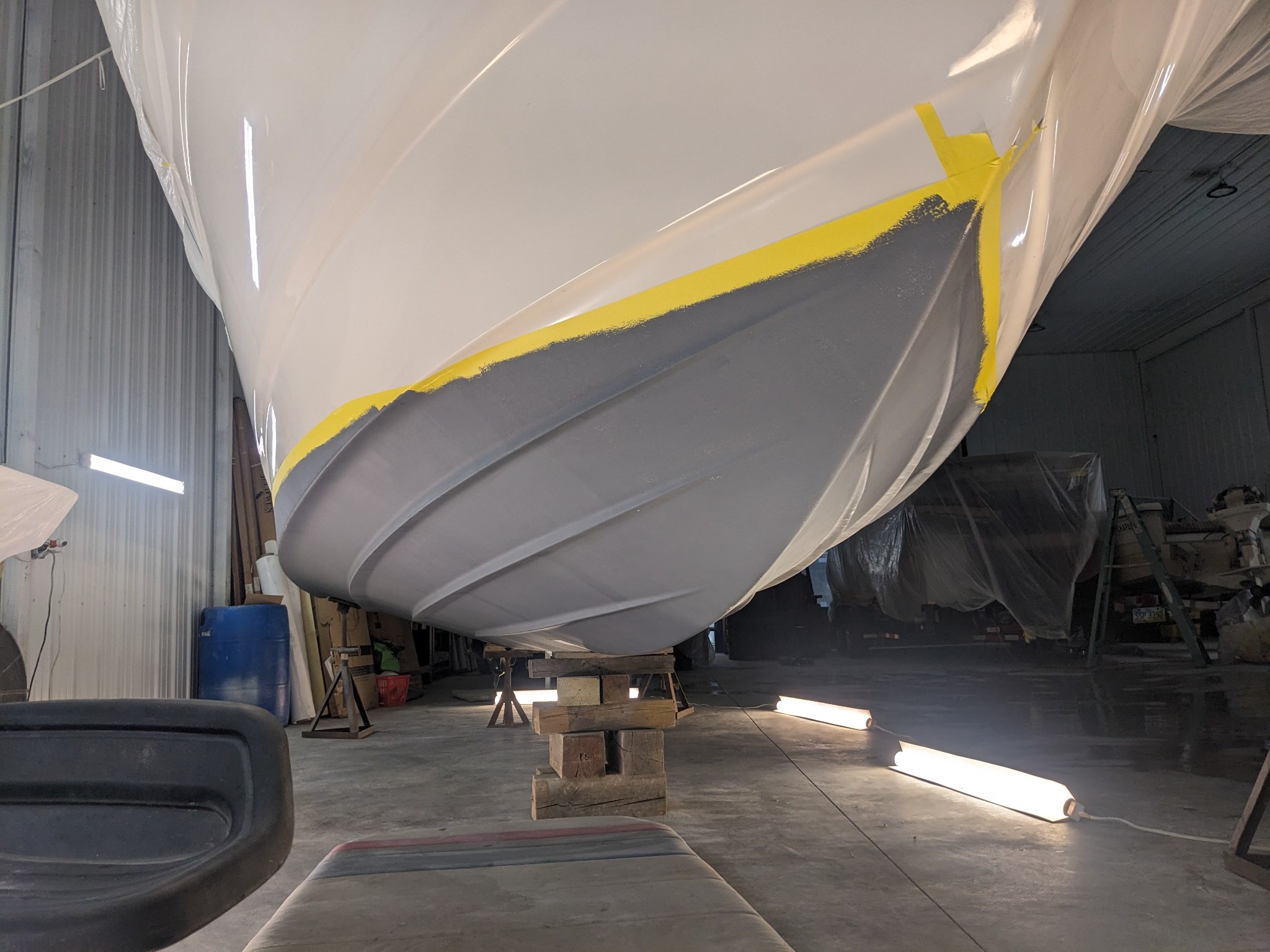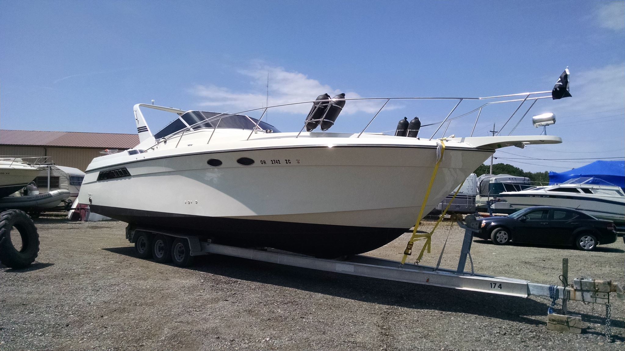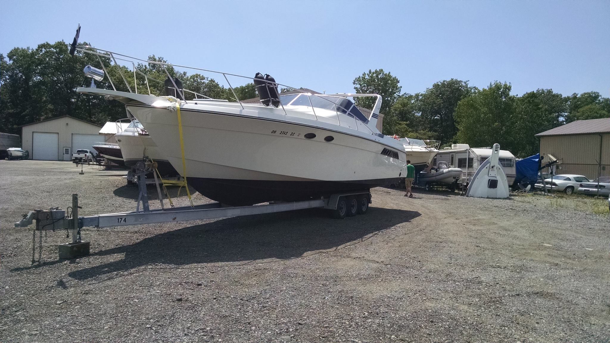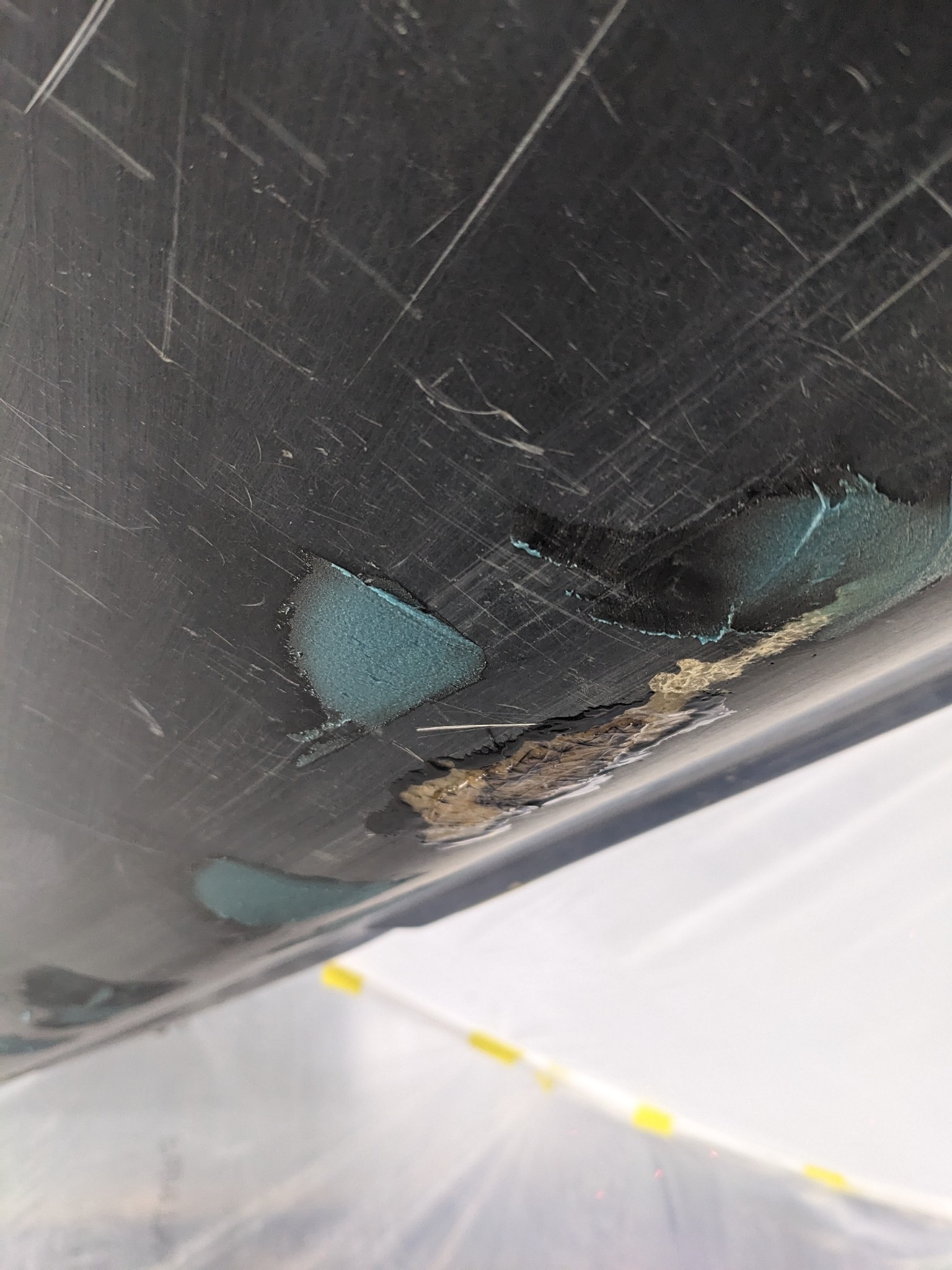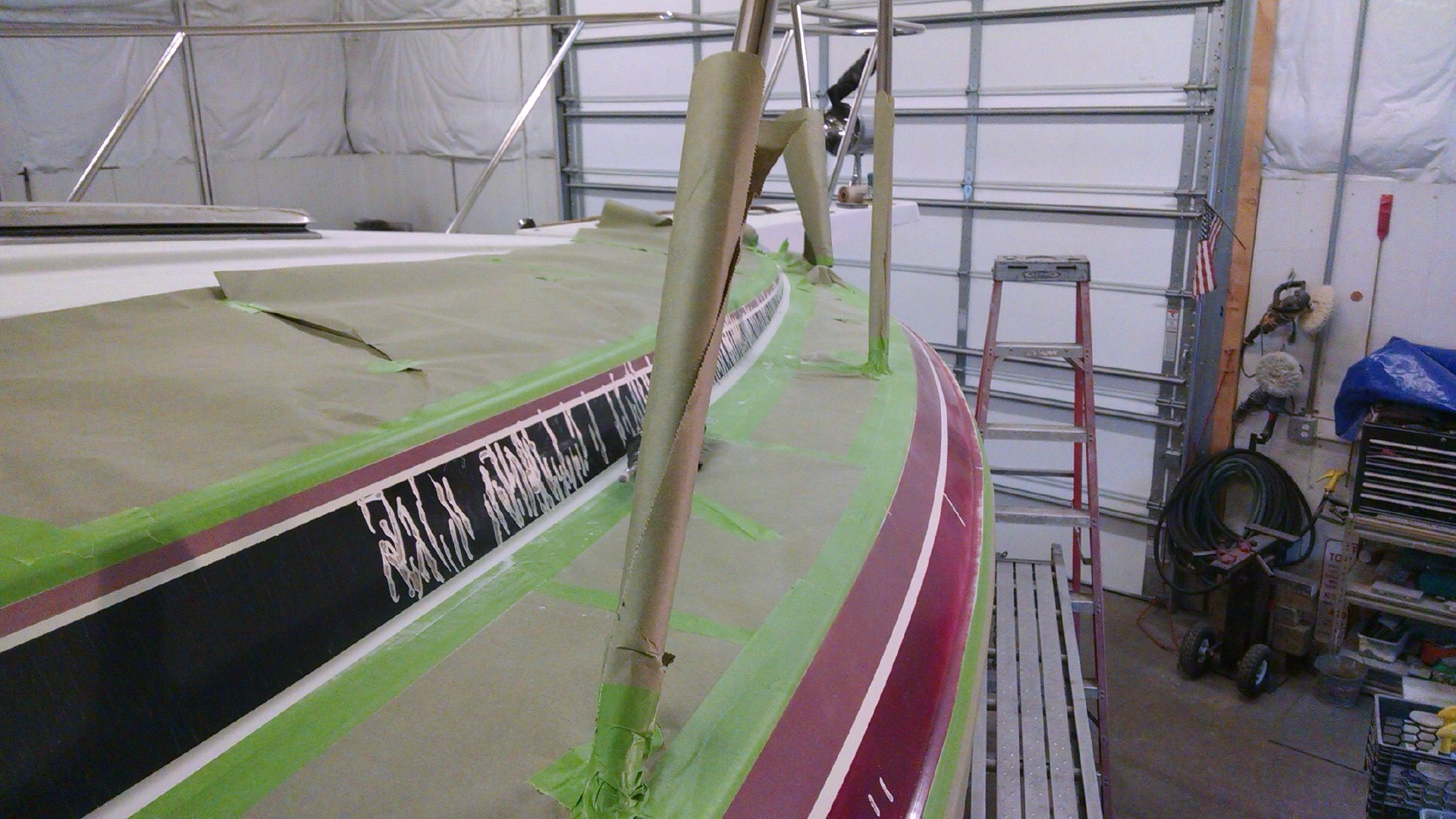 Heavy snow fall at Lake Chautauqua, New York, brought shed roof down on ski arch and windshield. Re-gel-coated top half, added new graphics. Replaced with new windshield and brackets.